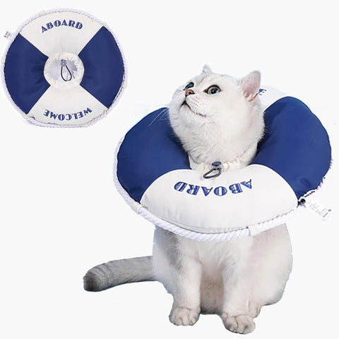 • ★ Cute Design: The unique lifebuoy shape makes cats cuter to wear. At the same time. the blue and white colors can keep cats in a good mood and help their recovery after surgery.